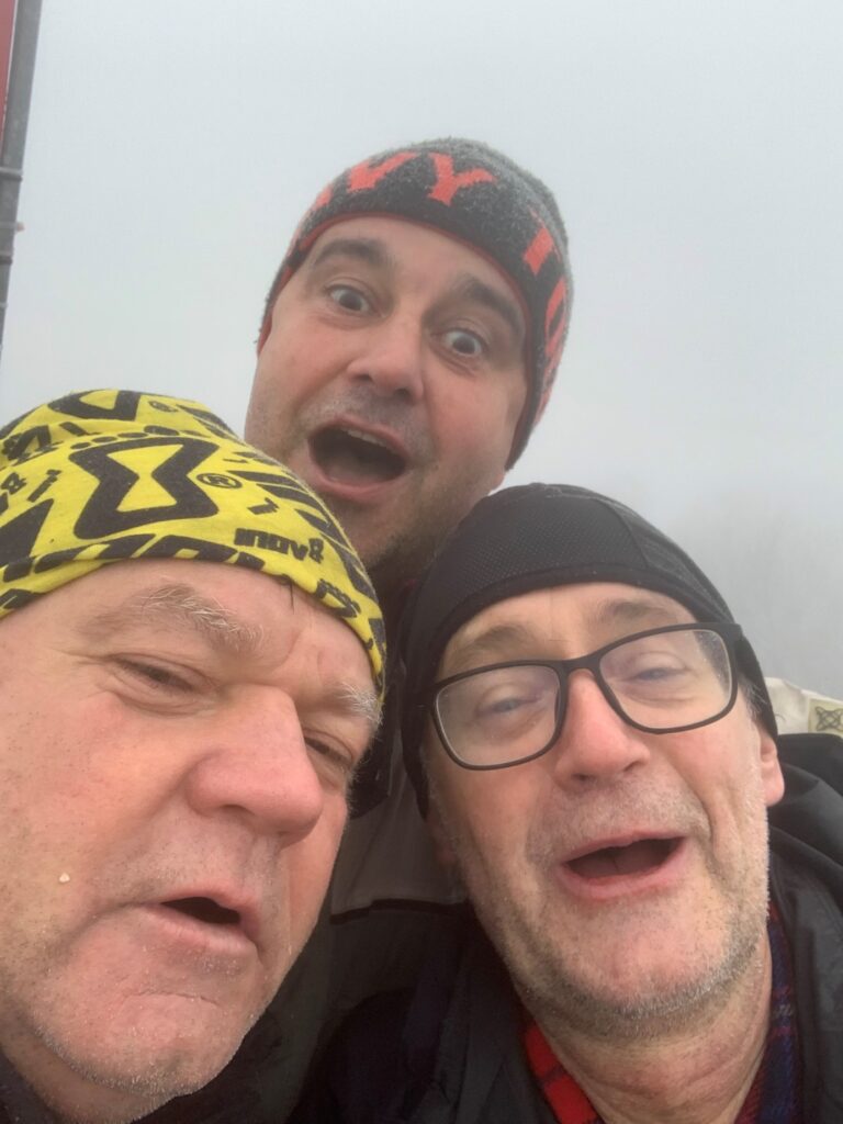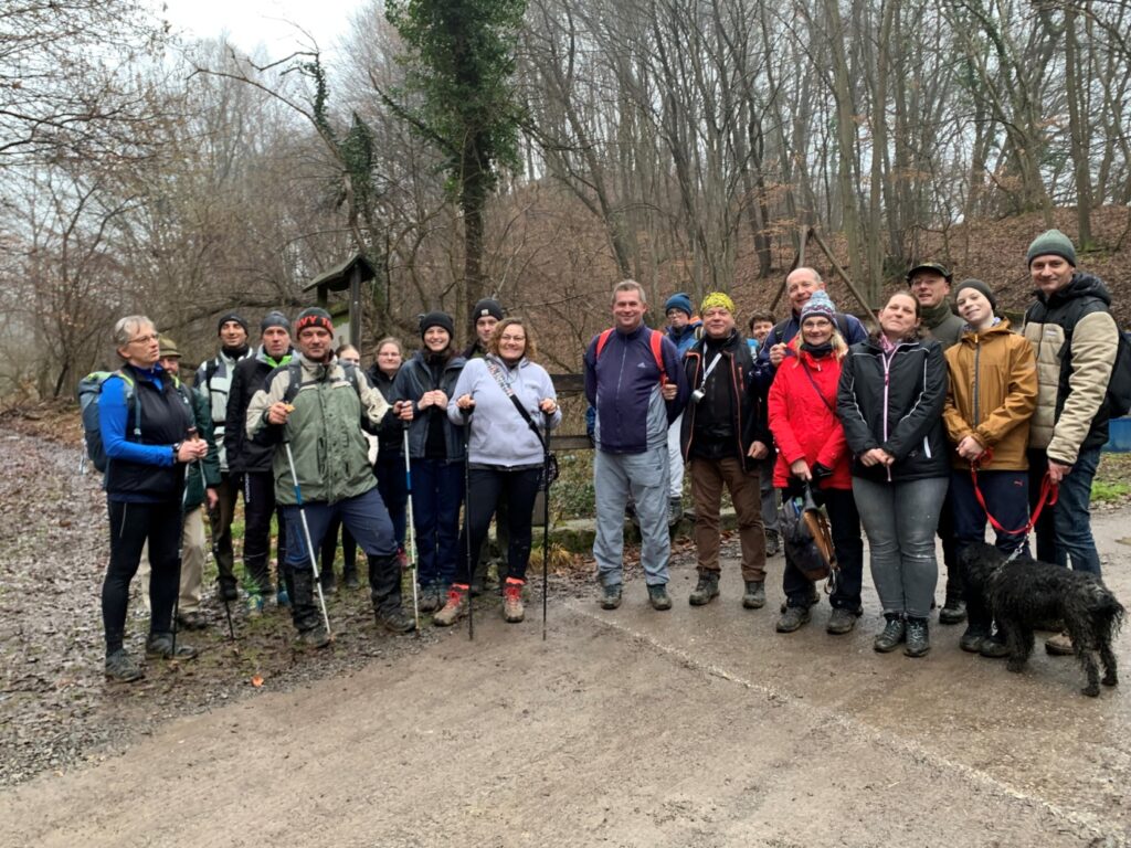 Pusztabánya – Csengő hegy – Hosszúhetényi vízfolyás déli irányba – a nagy szivató – a Zengőre. Onnan – nyereg, esőház, majd meredeken le a műútig – Püspökszentlászló át a falun, – nagy rét széle – kis-lób völgy – Üveghuták. Táv: 12,68 km 513 szint, 3 óra 44 perc bruttó idő. /Cukornak 3 x akkora a táv, ugyanannyi idő alatt / A végén jól elfáradva, de vidáman vettünk búcsút 2023-tól.